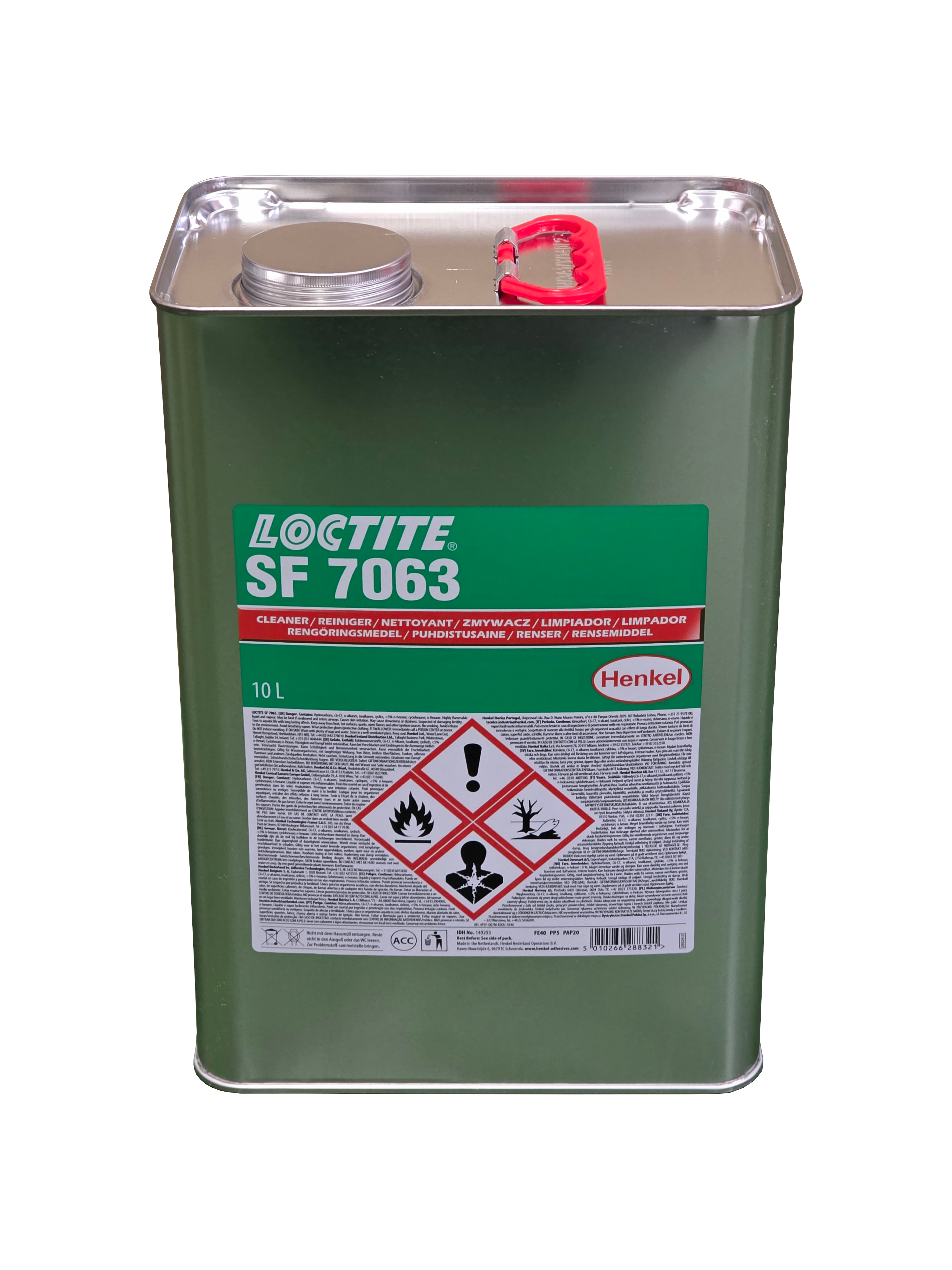 LOCTITE SF 7063 is a non-CFC solvent based formulation for cleaning and degreasing of surfaces to be bonded with LOCTITE adhesives. The product can also be used for cleaning and degreasing machine components during maintenance operations. LOCTITE SF 7063 has no effect on the speed of cure or final strength of LOCTITE adhesives other than providing a clean surface for good adhesion and adhesive cure. Unclean or partially cleaned surfaces can affect adhesive performance. Handling precautions Cleaner must be handled in a manner applicable to highly flammable materials and in compliance with relevant local regulations. Special care must be taken to avoid contact of the product or its vapour with naked flame or any electrical equipment that is not flame proofed. The solvent can affect certain plastics or coatings. It is recommended to check all surfaces for compatibility before use. Further informations on the product can be obtained from the local technical department: biuro@woronko-kleje.pl